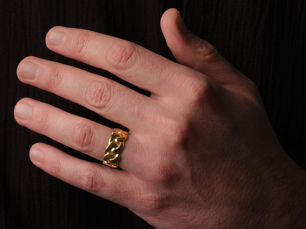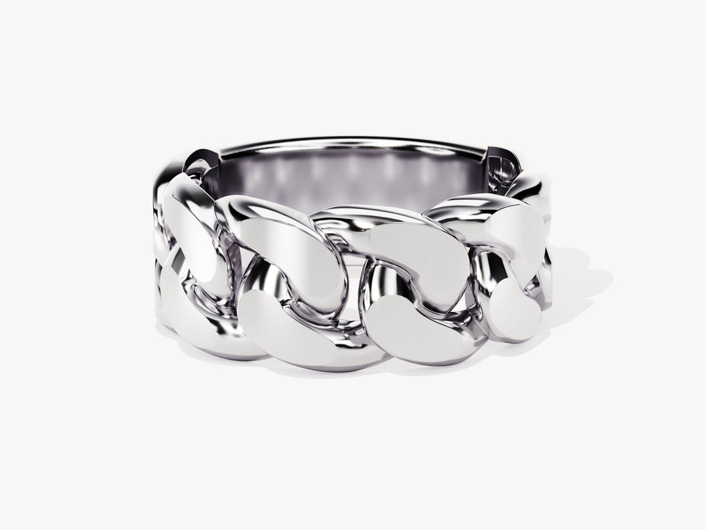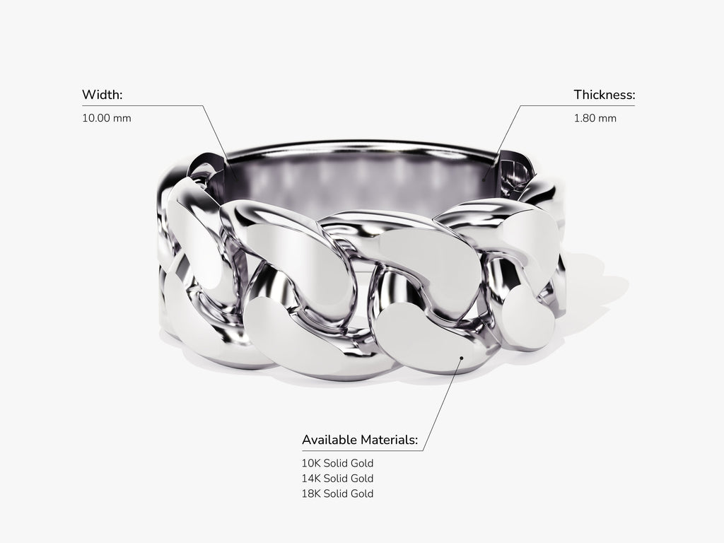Crafted from solid gold, the substantial 10.00 mm chain design creates a powerful and distinctive look. This ring is more than an accessory; it's an emblem of strength and style, making a daring statement with its bold and eye-catching presence on the finger.