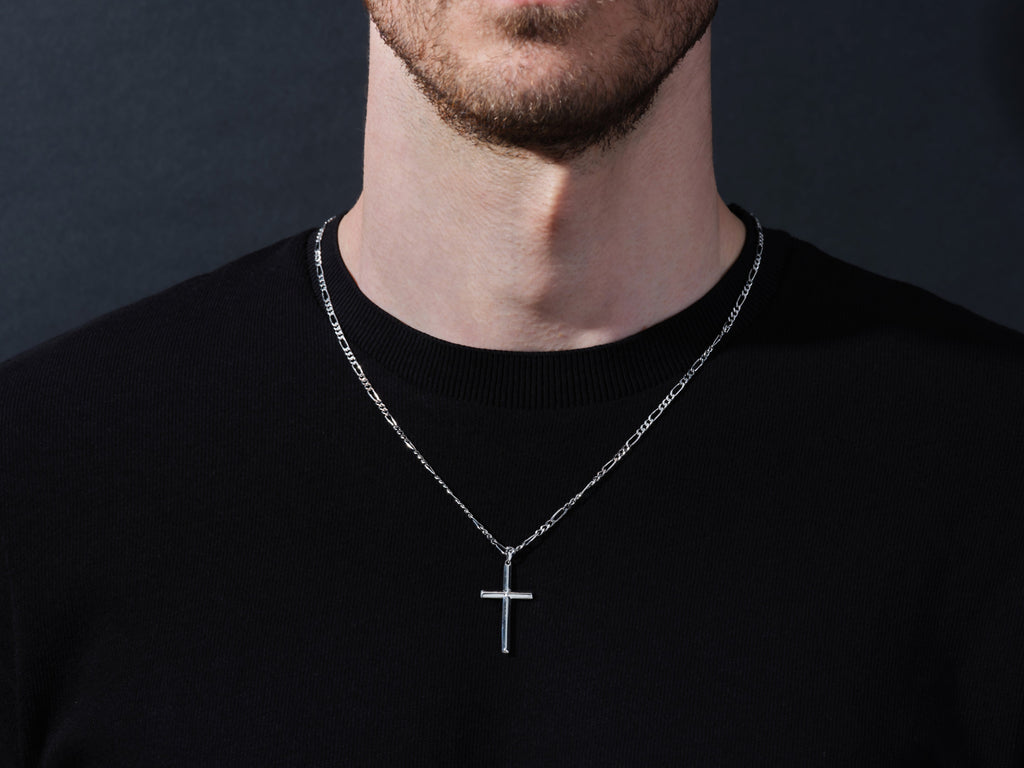 14k Gold 2.5mm Figaro Chain Cross Necklace