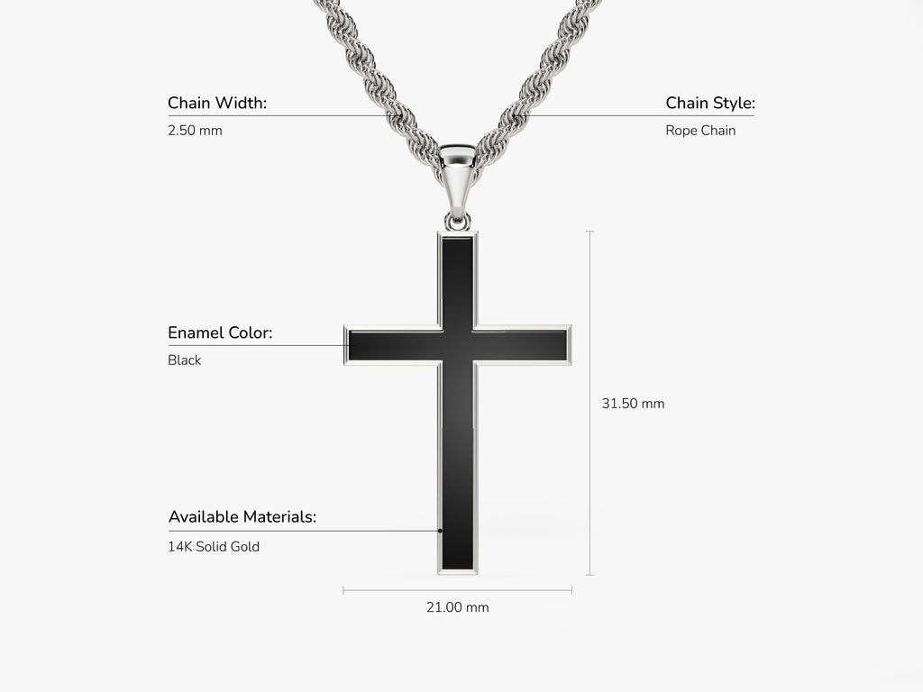 The intricately woven rope chain, featuring links that spiral around each other with precision, offers a visually dynamic experience. Beyond its striking appearance, the black cross pendant introduces a layer of mystery and depth, symbolizing individuality and a willingness to embrace the unconventional.