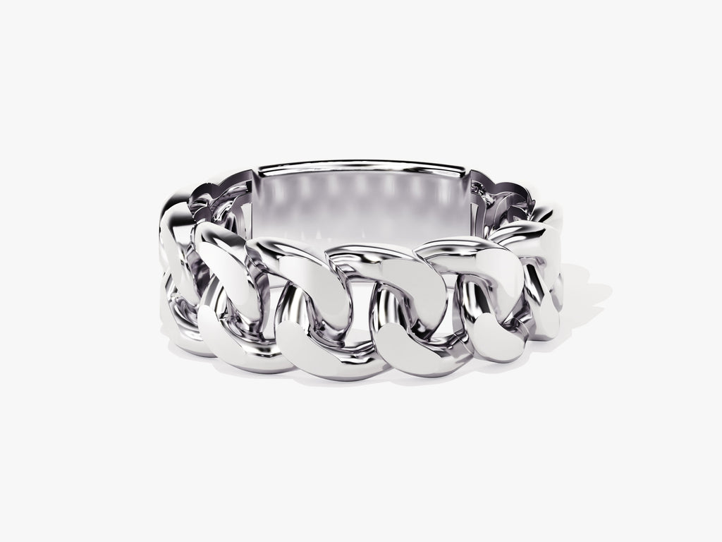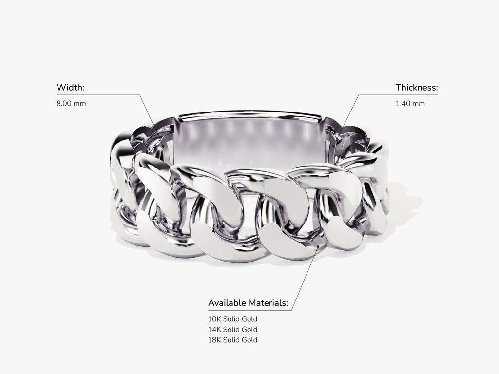 14k Gold 8.00 mm Chain Ring is a bold and distinctive accessory that makes a powerful statement. Crafted from 14k solid gold, the substantial 8.00 mm chain design creates a striking and eye-catching look on the finger.
