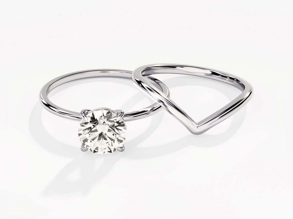 This is a minimalist design that embodies elegance via the combination of two beautiful rings. The set features 1.5 CT of Round Cut Diamond Engagement Ring and a perfectly matching 1.5mm wide Curved Plain Gold Wedding Band. The engagement ring has options of 1 CT or 2 CT as well. They come in 14k, and 18k solid gold with the options of yellow, white, and rose colors.