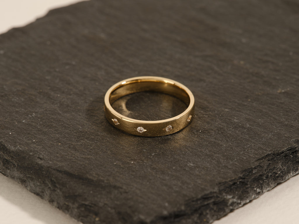 With brilliant cut diamonds and a unique, intricate bezel design, this ring features exceptional craftsmanship that is sure to impress. This classic piece features round-cut diamonds, bezel set along the band. The end result is a sparkly look that you won't want to miss out on.