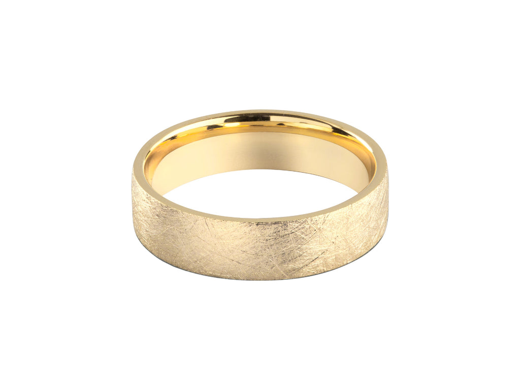 This 5mm wedding band embodies the classic flat wedding band design that is elevated with ice matte finish for a modern textured look. Comfort fit ensures a comfortable wear that won't compromise on style. Whether you're saying "I do" or celebrating years of togetherness, this timeless design will be there to witness your joyful memories and beyond.