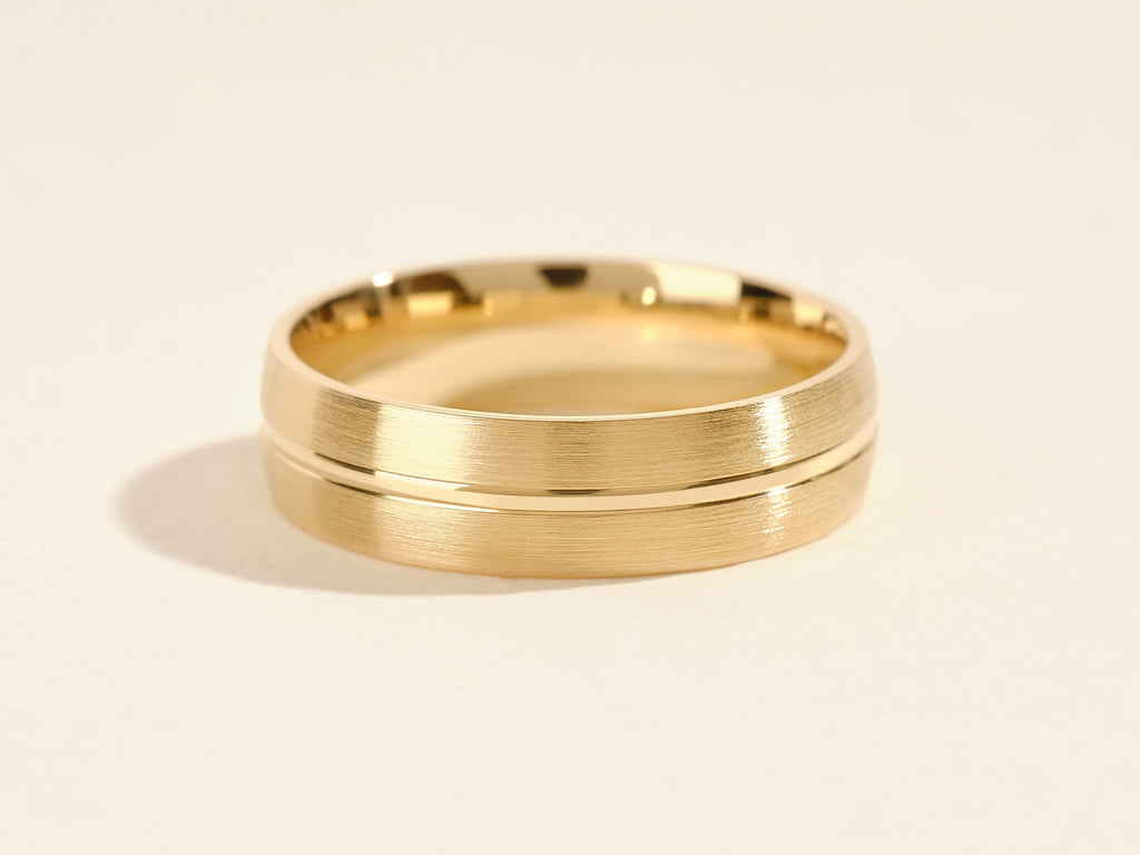 6mm Basic Carved Matte Brushed Men's Gold Wedding Band