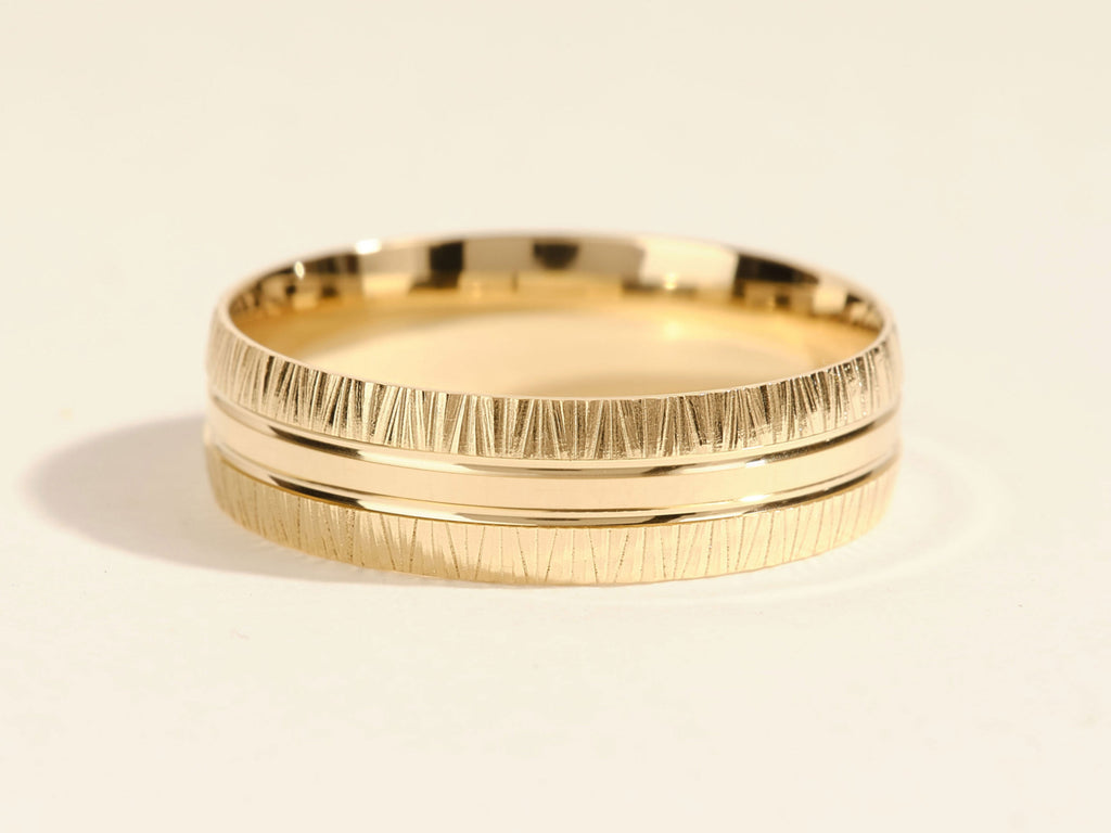 6mm Grooved Fancy Accents Men's Gold Wedding Band