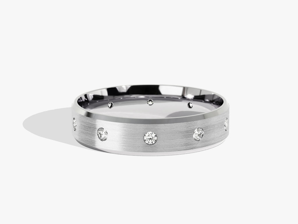6mm Matte Brushed Beveled Edge Ten Stone Eternity Men's Engagement Ring (0.30 CT TW)