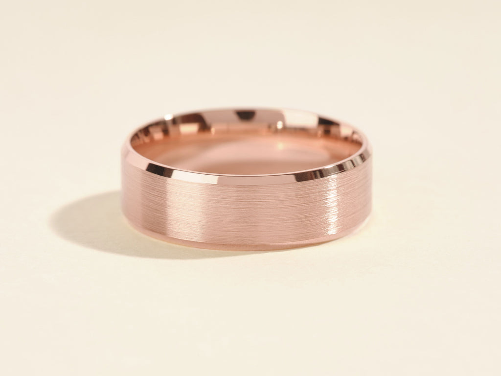 7mm Matte Brushed Beveled Edge Men's Gold Wedding Band