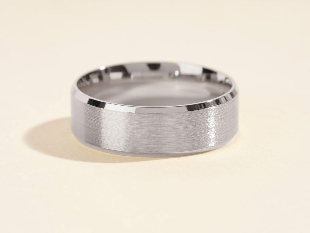 8mm Beveled Edge Men's Wedding Band - Matte Brushed