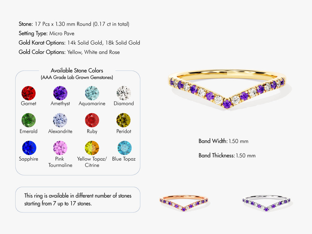 The Alternating Birthstone Curved Ring features a beautifully curved band with alternating birthstones, offering a vibrant and personalized touch. The design balances elegance and meaning, making it a perfect way to celebrate special occasions or milestones. Its versatile style allows it to be worn alone or stacked with other rings for a more customized look.