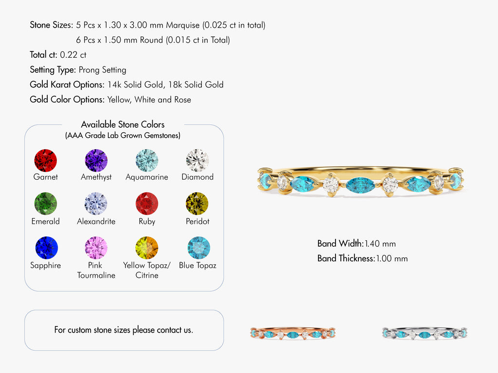 Dainty and stackable ring with alternating marquise and round stones. With these splendid gems' mental and spiritual healing properties, this birthstone ring will be the perfect gift for your precious loved ones or yourself!