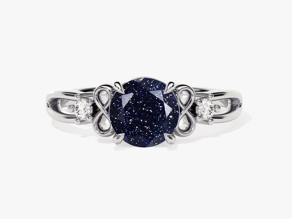 Art Deco Blue Sandstone Engagement Ring with Moissanite Sidestones