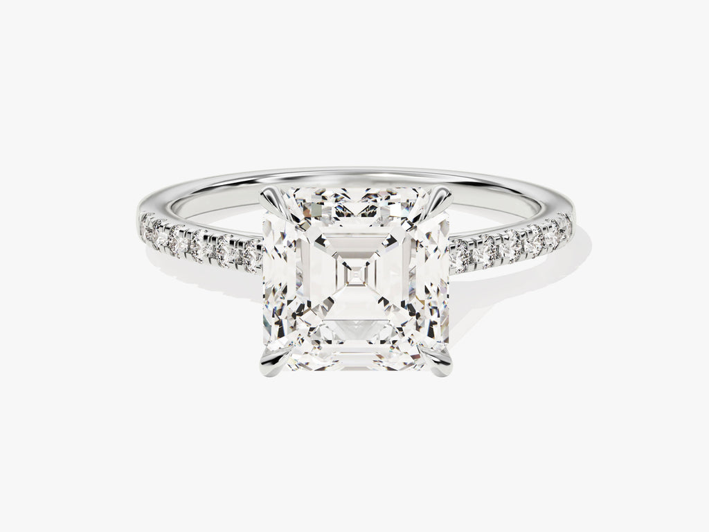 Asscher Cut Diamond Engagement Ring with Pave Set Side Stones (3.00 CT)