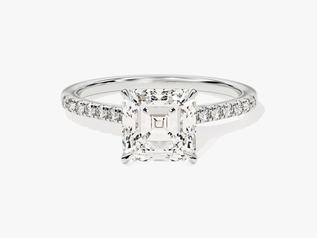 Asscher Cut Moissanite Engagement Ring with Pave Set Side Stones (2.00 CT)
