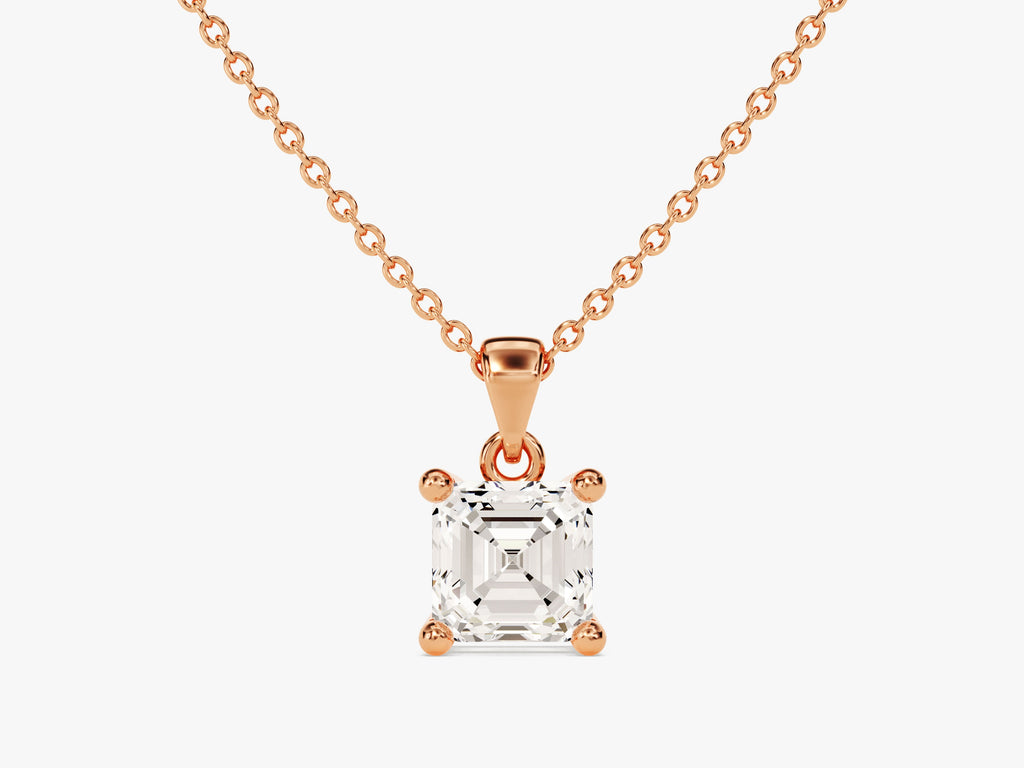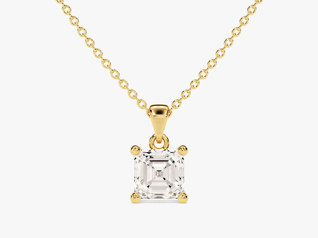 Designed to be the perfect match for any outfit, this pendant is elegant and glamorous. The asscher-cut lab grown diamond or moissanite gives a sleek and polished look that is irresistible.