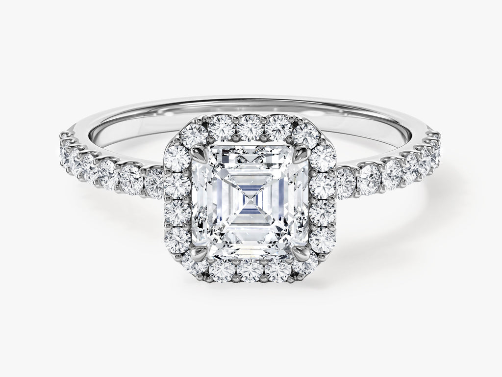 Asscher Halo Moissanite Engagement Ring with Pave Set Side Stones (1.00 CT)