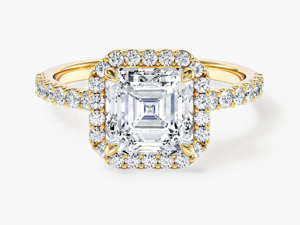 Asscher Halo Moissanite Engagement Ring with Pave Set Side Stones (2.00 CT)
