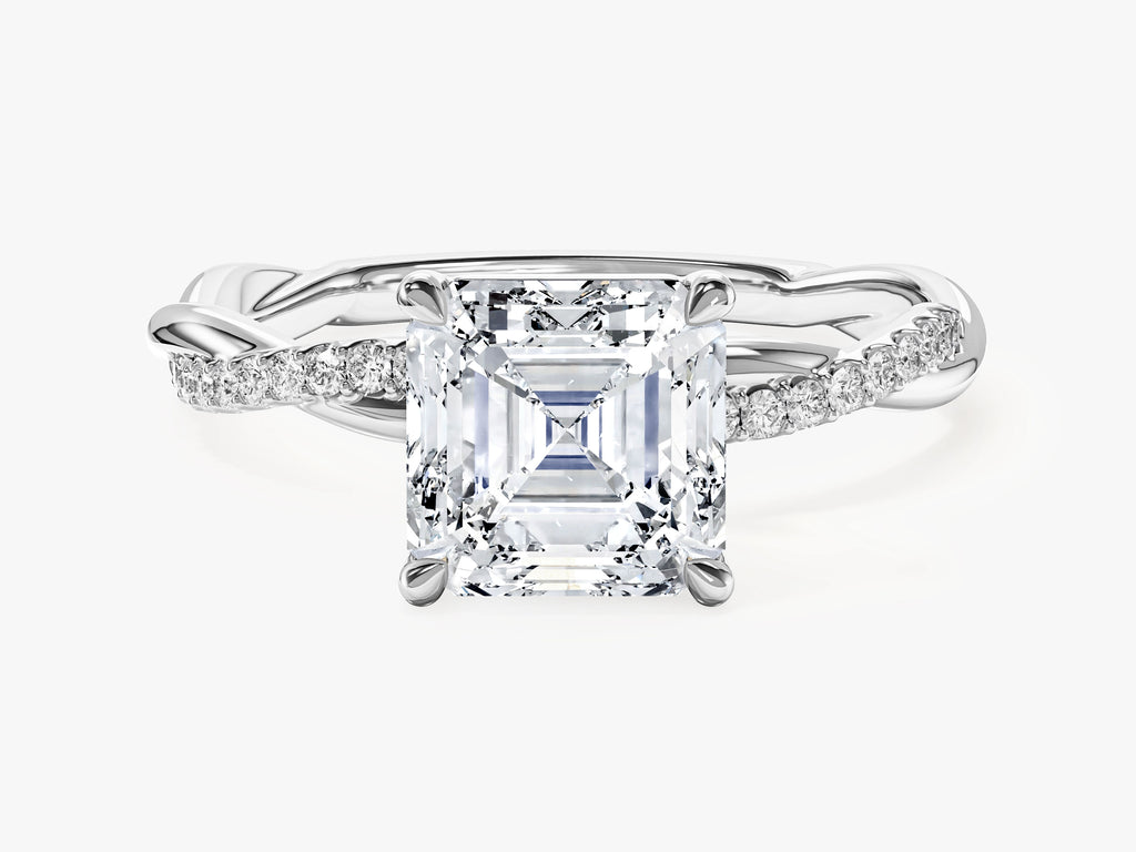 Asscher Twisted Lab Grown Diamond Engagement Ring with Pave Set Side Stones (2.00 CT)