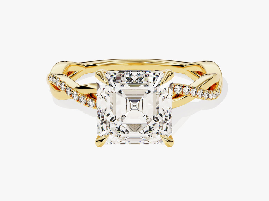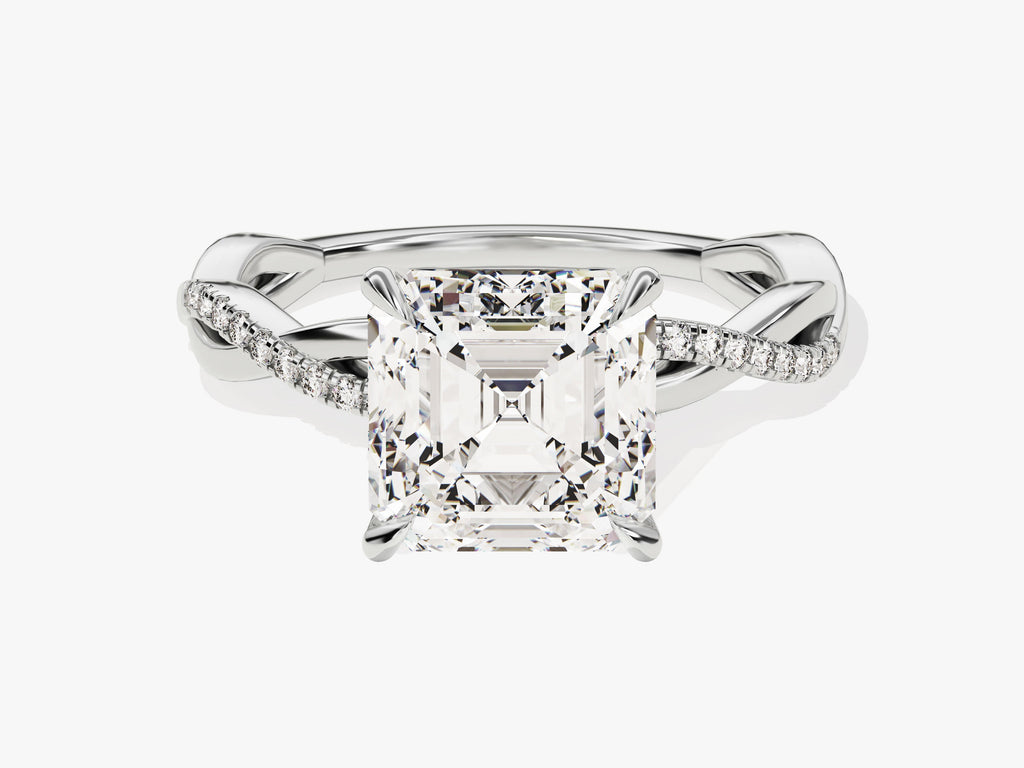 Asscher Twisted Lab Grown Diamond Engagement Ring with Pave Set Side Stones (3.00 CT)