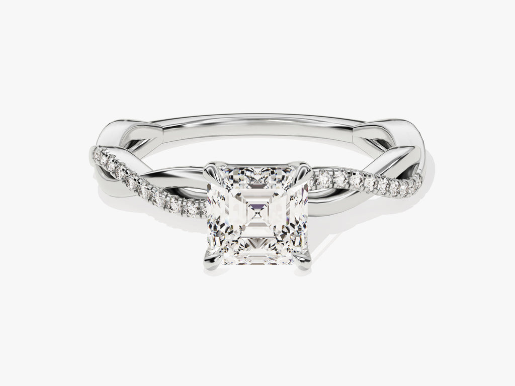 Asscher Twisted Diamond Engagement Ring with Pave Set Side Stones (1.00 CT)