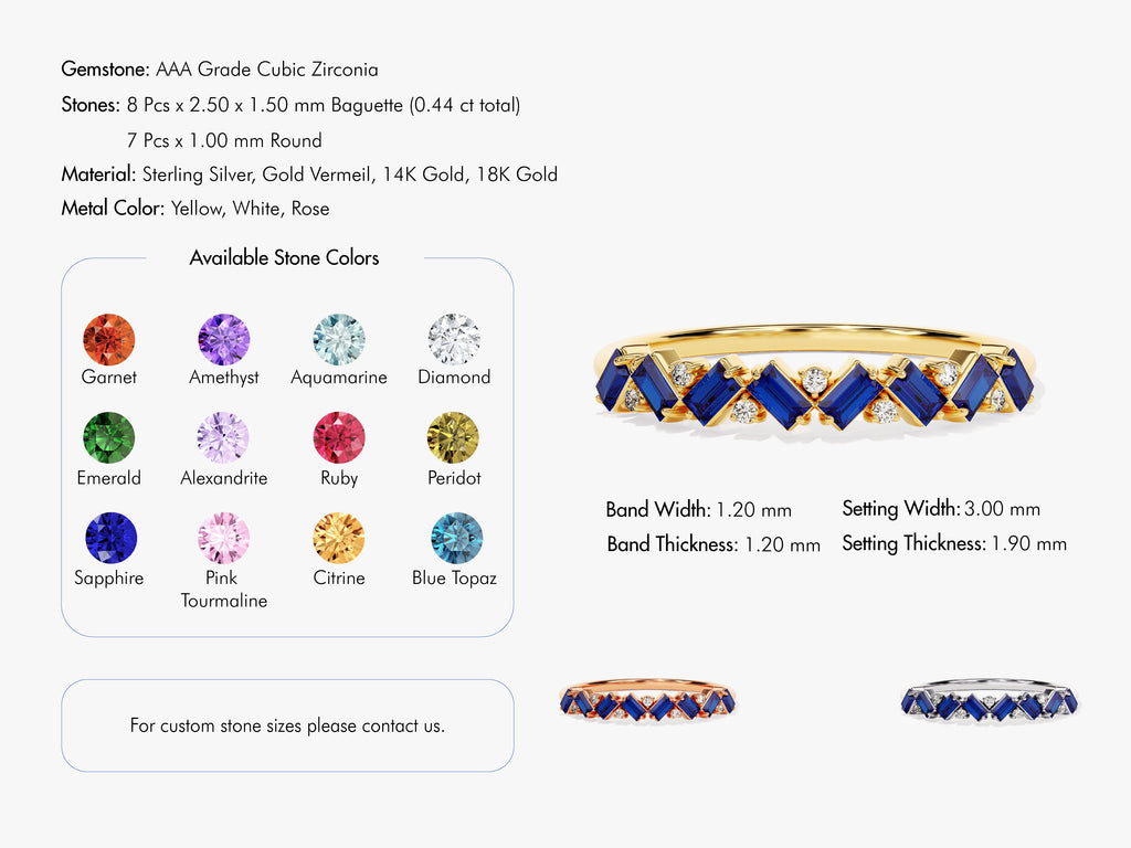 Stone Sizes: 8 x 2.50 x 1.50 mm Baguette, 7 x 1.00 mm Round (0.44 ct in total)