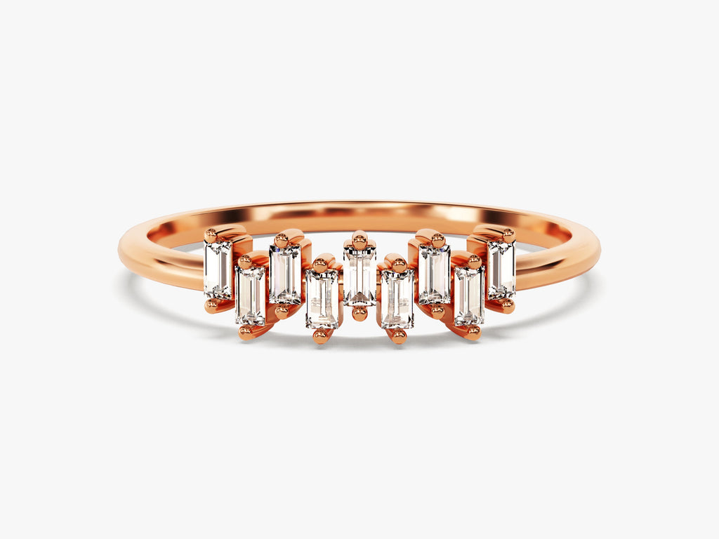 This stunning ring features gold vermeil, sterling silver or solid gold with diamond - moissanite stones. It has a delicate, minimalist design that will look great by itself or stacked with other rings. It's the perfect gift for a loved one, or yourself!