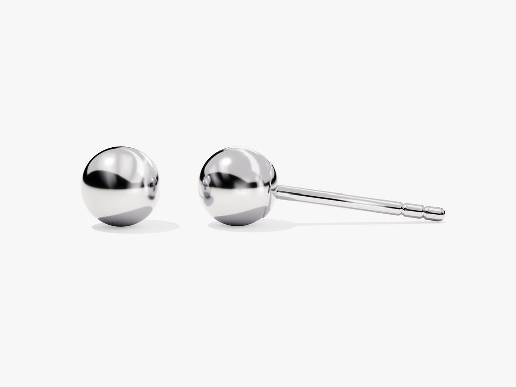 Ball stud earrings are a universal staple for everyday wear. These studs have a shiny, even finish that is cool yet elegant on the ears. The simple design makes them easy to pair with other jewelry, or can be worn alone for simplicity’s sake.