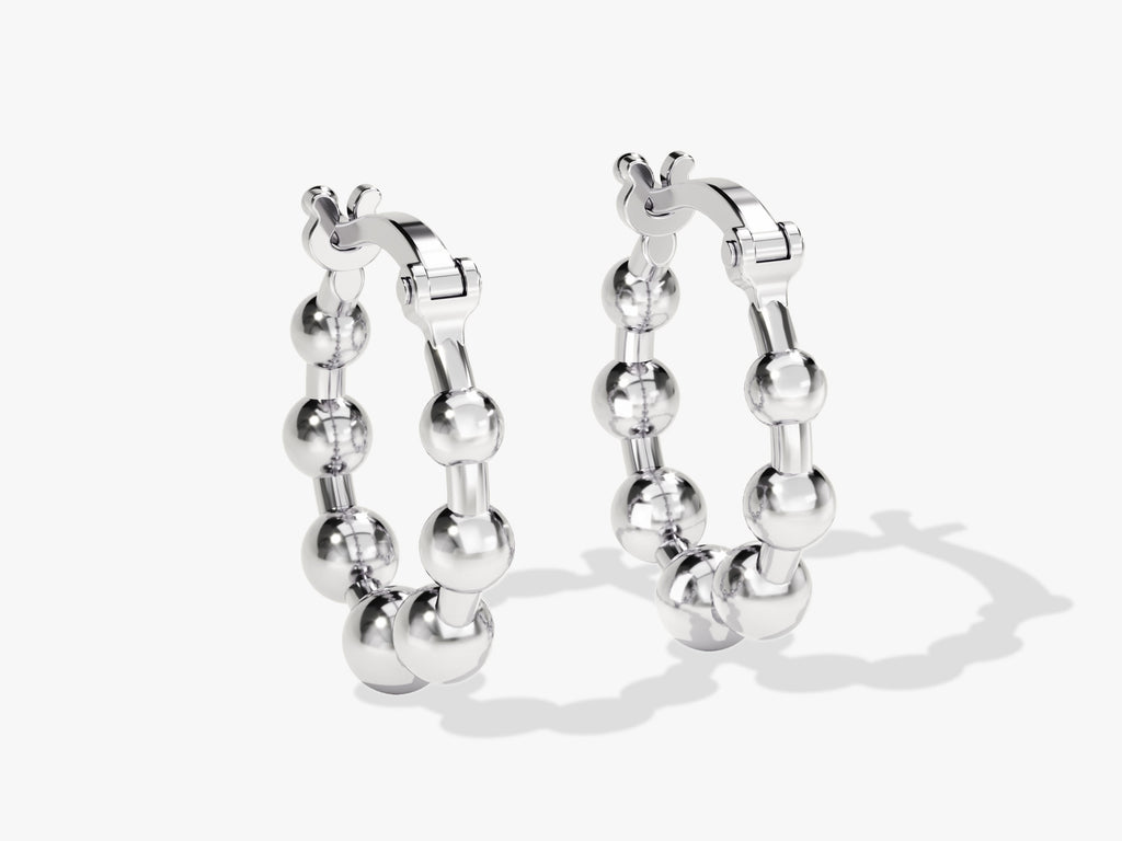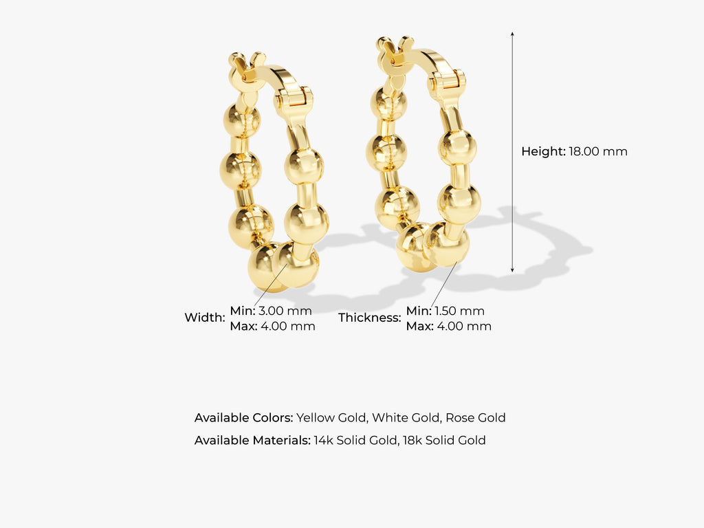 These hoops feature a series of polished gold beads, meticulously arranged to create a stunning and unique texture. Perfect for adding a touch of elegance to both casual and formal outfits.