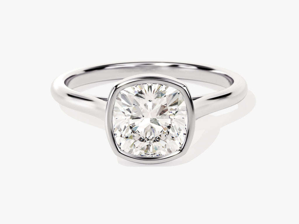 Bezel Cushion Moissanite Engagement Ring (2.00 CT)