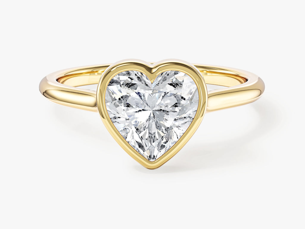 The Bezel Heart Lab Grown Diamond Engagement Ring is a romantic symbol of your love story. At the heart of this design is the distinctive bezel setting, encasing the heart-shaped diamond within a precious metal rim. This setting not only adds a contemporary touch to the ring but also offers protection and security, ensuring your symbol of love remains as precious as the day you received it.