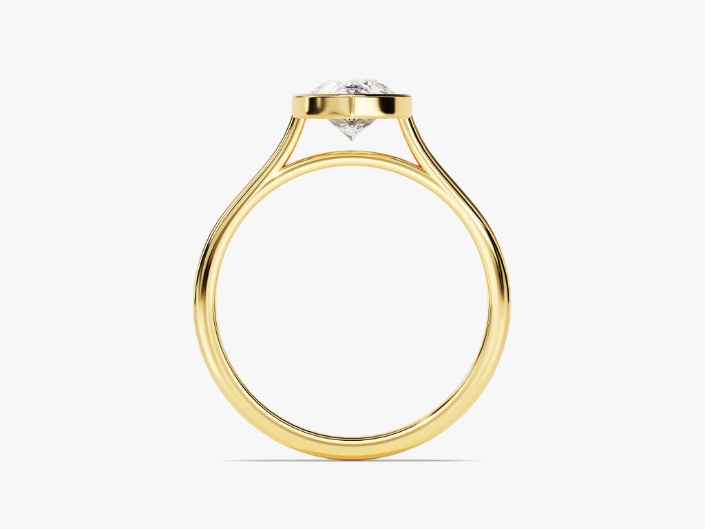 Elevate your love story with our Bezel Pear Cut Lab Grown Diamond Solitaire Engagement Ring, a seamless blend of timeless elegance and modern refinement. At its core, a dazzling pear-cut lab-grown diamond takes center stage, designed to capture hearts with its remarkable clarity and distinctive allure.