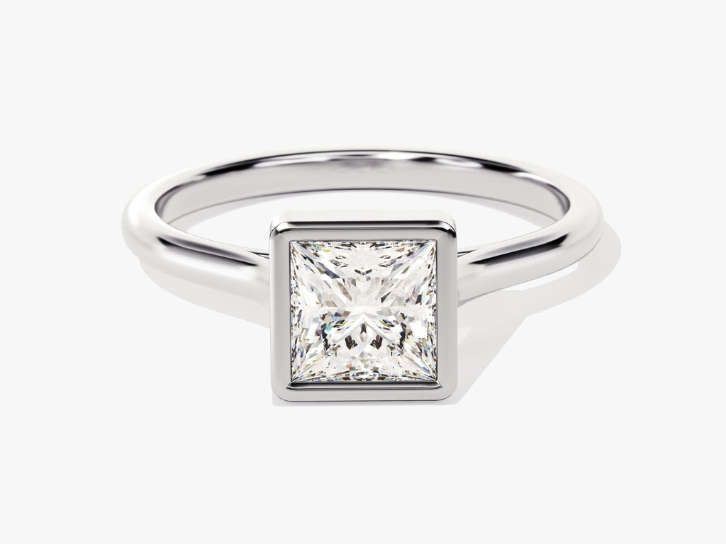 Bezel Princess Moissanite Engagement Ring (1.00 CT)