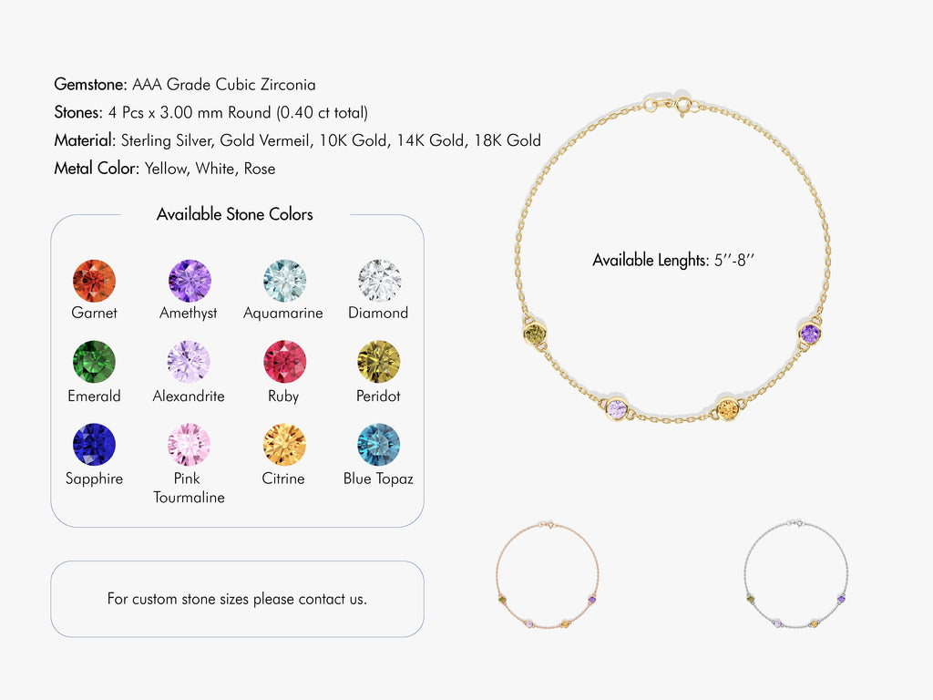 Fascinating birthstones are aligned in this station bracelet, ready to sprinkle its brilliance on your combination or be the star of the show when worn alone. With these splendid gems' mental and spiritual healing properties, you can manifest anything you desire!