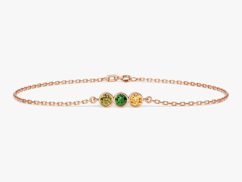 Gorgeous birthstones aligned together and created this feminine, graceful bezel set birthstone bracelet that you'll never want to take off. With these splendid gems' mental and spiritual healing properties, you can manifest anything you desire!