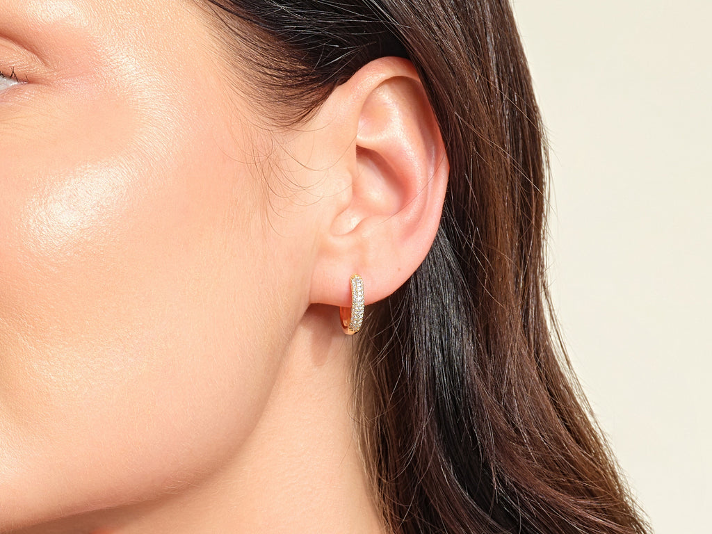 Encrusted with a stunning array of pave-set diamond - moissanite stones, these hoops radiate brilliance and sophistication. Crafted from high-quality solid gold, gold vermeil or sterling silver they ensure lasting durability and a luxurious finish, making them perfect for both everyday wear and special occasions.