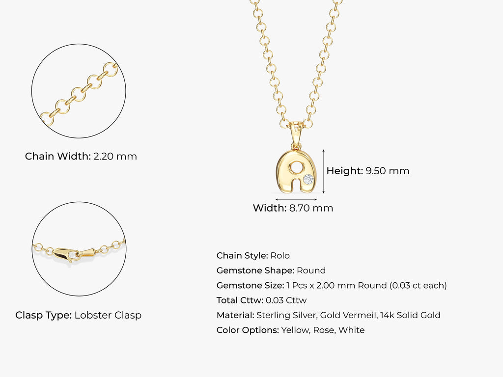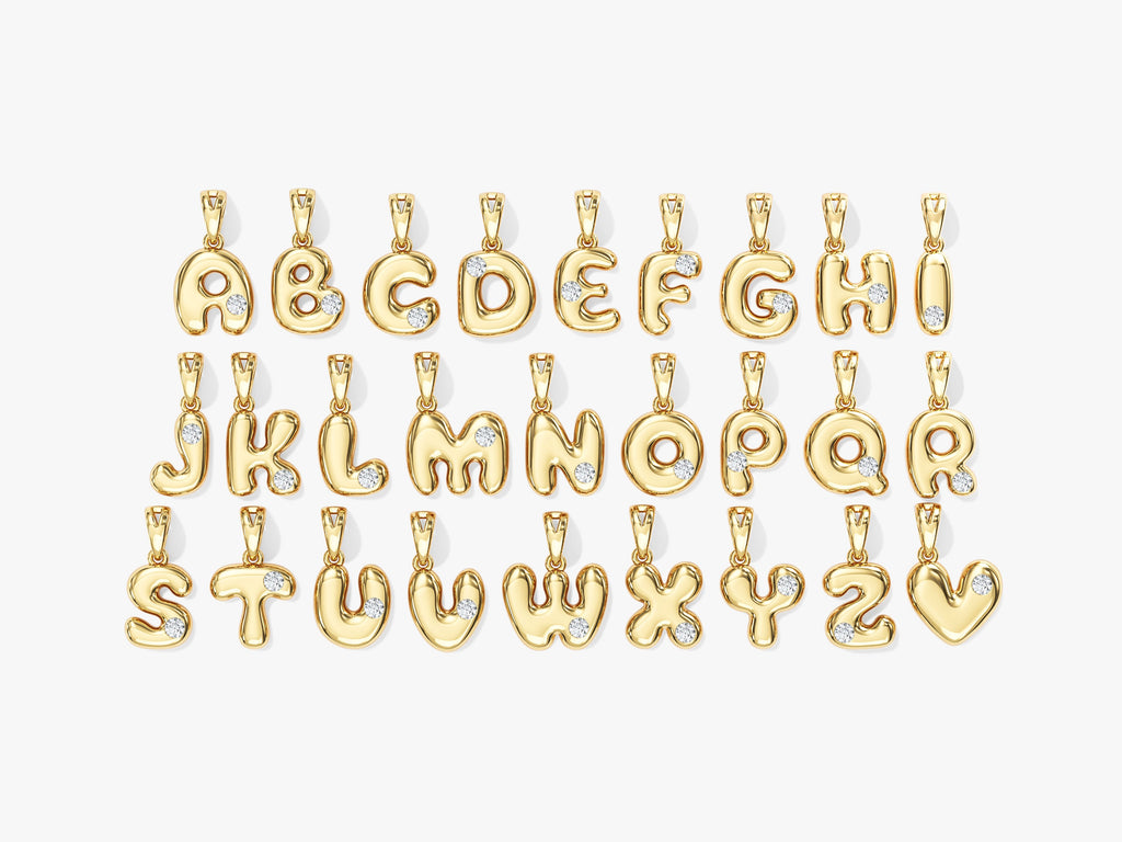Striking yet refined, this Bubble Initial Necklace with Gemstone features a clean, sculptural letter accented with a subtle sparkling stone. Crafted in solid gold, gold vermeil, or sterling silver, it adds a touch of personality and brilliance to your everyday look—a timeless piece with just the right amount of shine.