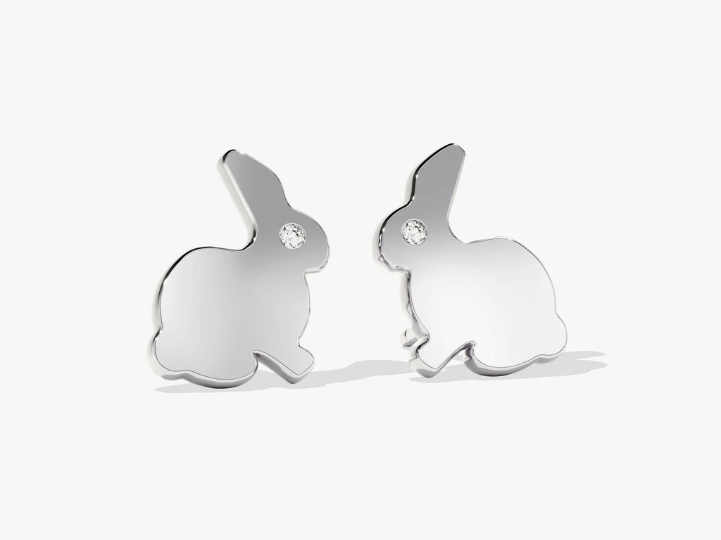 Bring a playful touch to your jewelry collection with this bunny stud earring. Featuring an adorable little bunny design, this earring adds a cute and charming accent to any outfit.