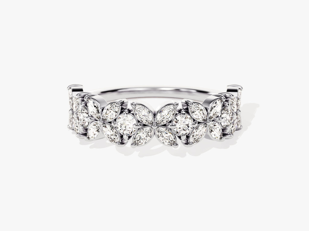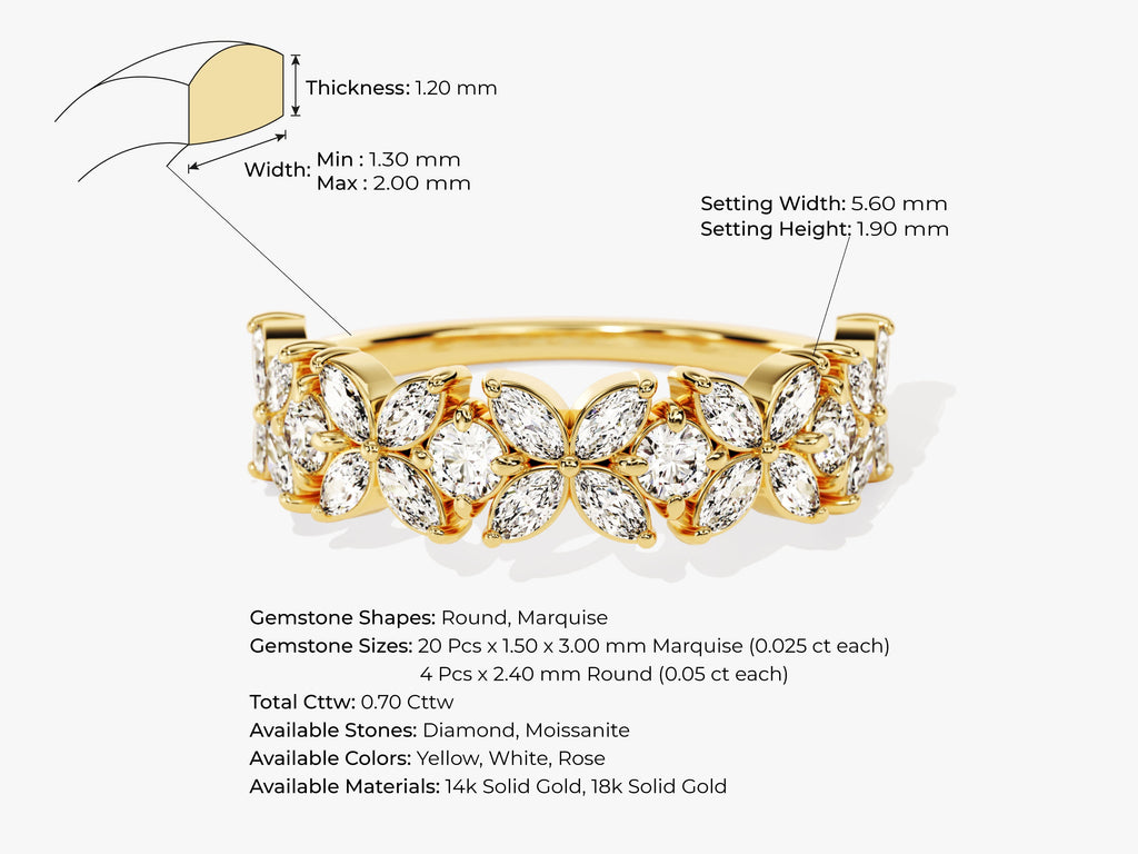 --Diamond - Moissanite Size: 4 Pcs x 2.40 mm Round, 20 Pcs x 1.50 x 3.00mm Marquise