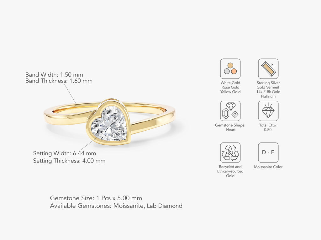 A contemporary twist on a timeless symbol, this ring combines the fluid lines of a bypass band with the romance of a heart-cut stone. The open design reflects movement and connection, while the heart center stone speaks of love and devotion.