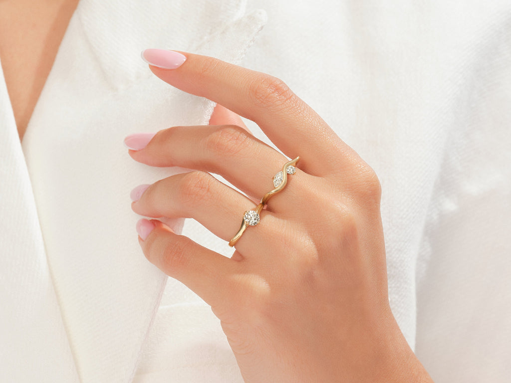 A modern symbol of connection and unity, this bypass ring features two sleek bands that gently curve toward one another, meeting in perfect harmony. Its fluid design represents the joining of two paths, making it a meaningful choice for a promise ring.