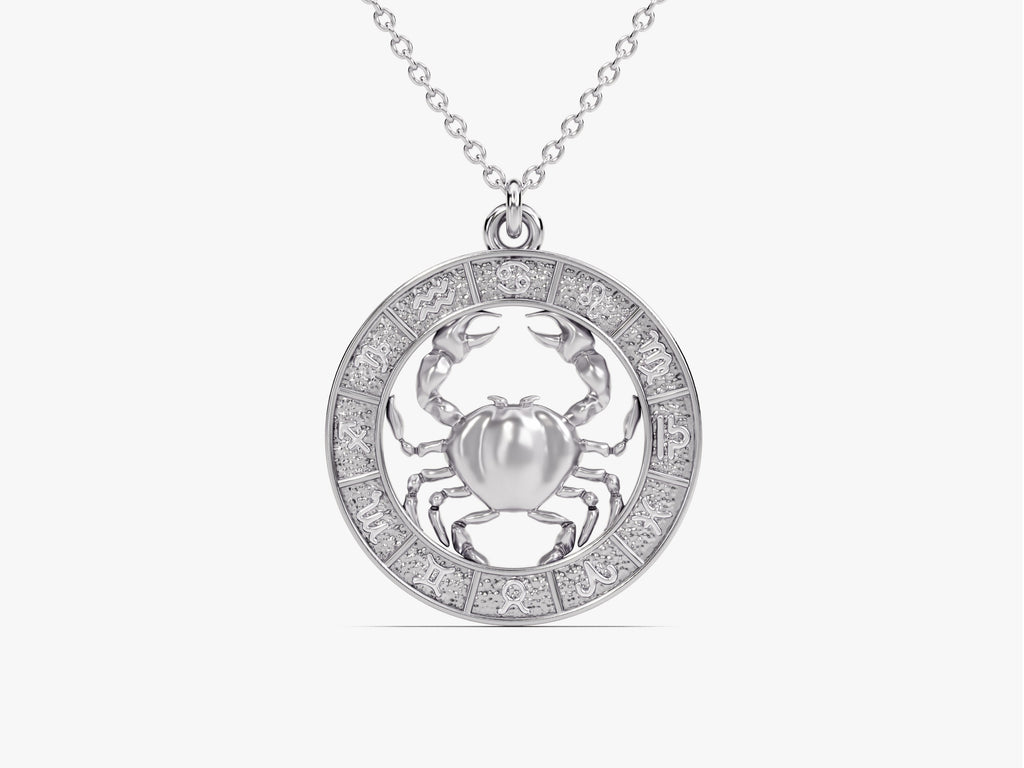 The centerpiece of this necklace is a delicately designed cancer charm, skillfully fashioned from gleaming solid gold, gold vermeil or sterling silver. The charm prominently features the symbol associated with cancer – the Crab. The intricately detailed design captures the crab's protective and resilient nature, symbolizing the Cancers' nurturing characteristics.