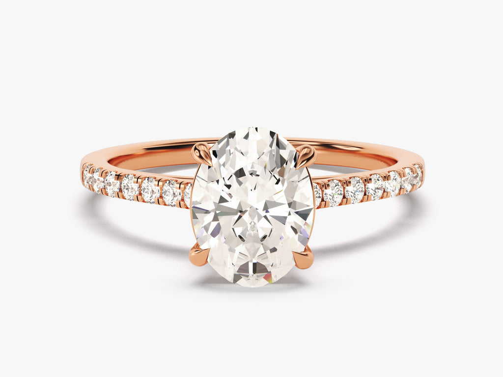 Cathedral Oval Cut Moissanite Engagement Ring with Pave Set Side Stones (2.00 CT)