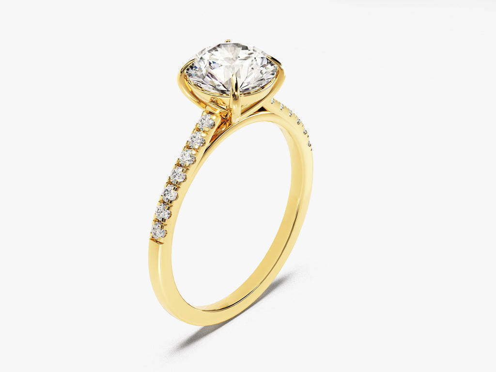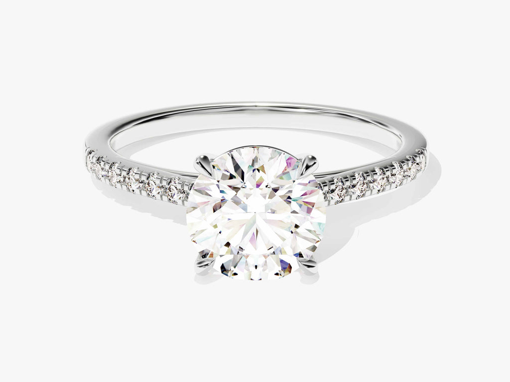 Cathedral Round Cut Moissanite Engagement Ring with Pave Set Side Stones (1.50 CT)