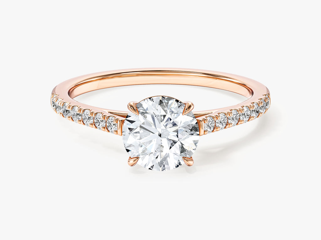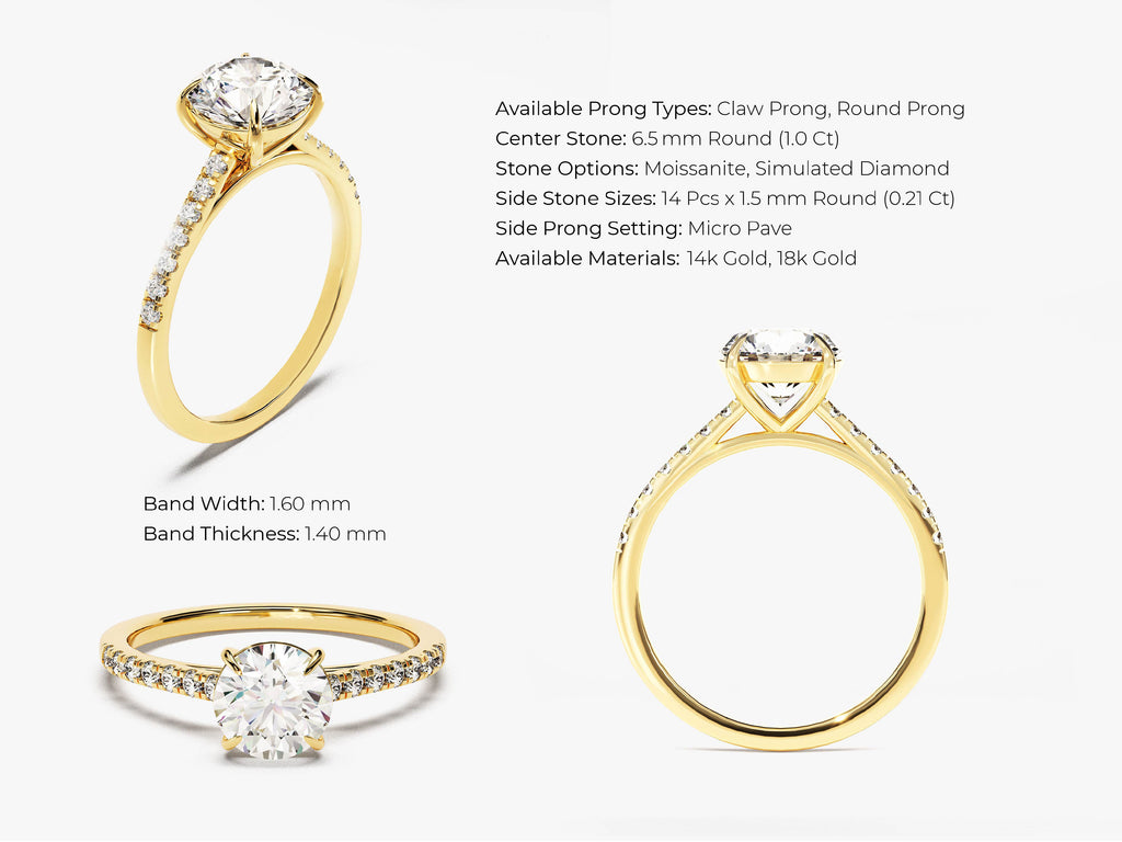 Cathedral Round Cut Moissanite Engagement Ring with Pave Set Side Stones (1.00 CT)