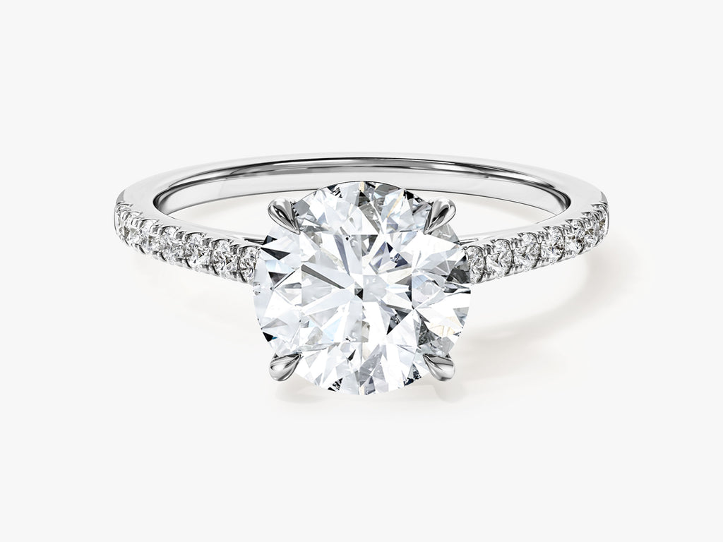 Cathedral Round Cut Moissanite Engagement Ring with Pave Set Side Stones (2.00 CT)