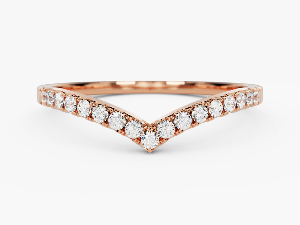 Sparkling pavé diamonds curve in a chic chevron shape in this wedding band and add instant glam to your style. It's comfy enough to wear every day and quite stackable with other rings, which makes it a perfect choice for celebrating your wedding, anniversary or any special occasion.