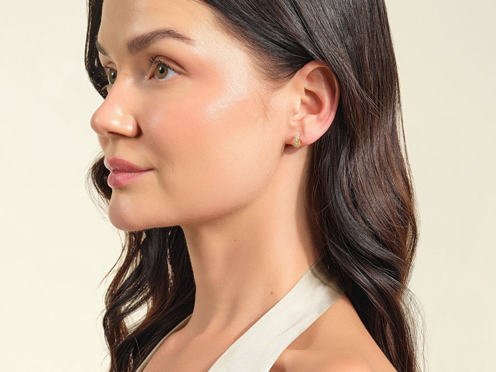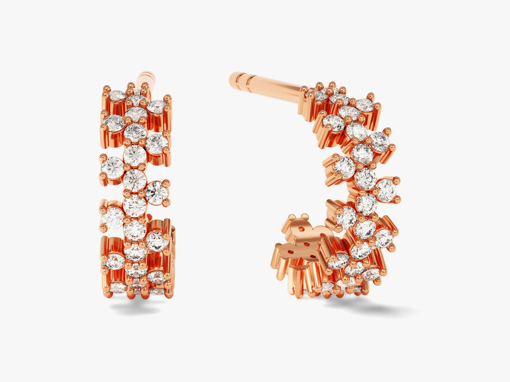 Radiate brilliance with our Chunky Hoop Earrings. These exquisite earrings showcase a symphony of prong-set diamond - moissanite stones, elegantly arranged to create a stunning half-hoop design.