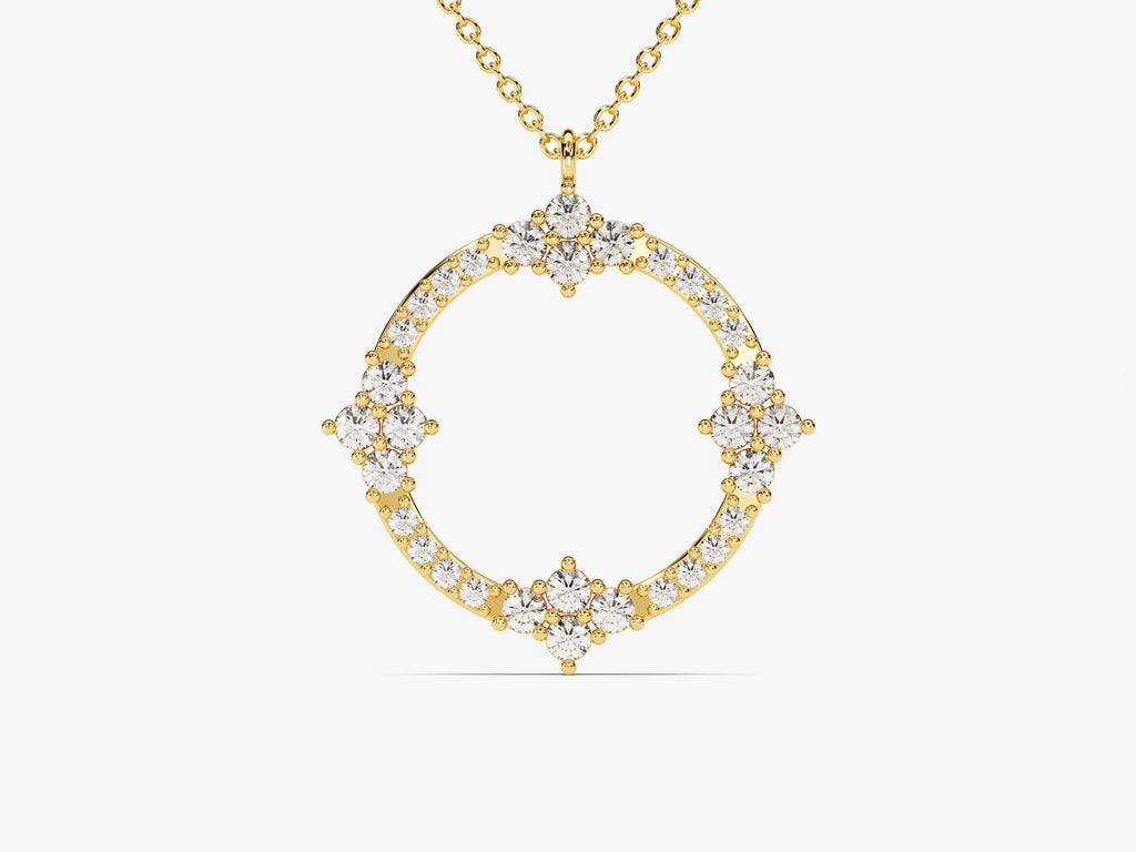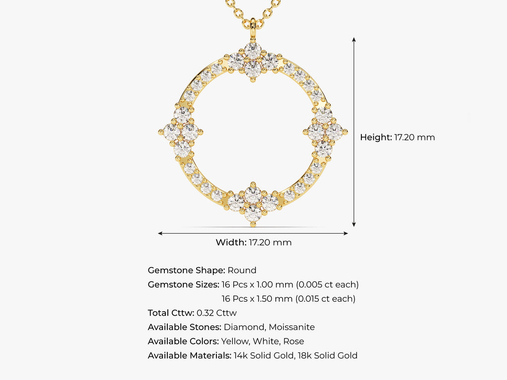 Adorn yourself with the epitome of elegance – our Circle Necklace in opulent solid gold, gold vermeil or sterling silver. Meticulously crafted, this exquisite piece features a refined chain and a captivating circle pendant adorned with radiant diamond - moissanite stones, creating a harmonious blend of sophistication and sparkle.