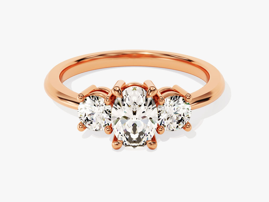 Classic Basket Set Three Stone Oval Moissanite Engagement Ring (1.50 CT TW)