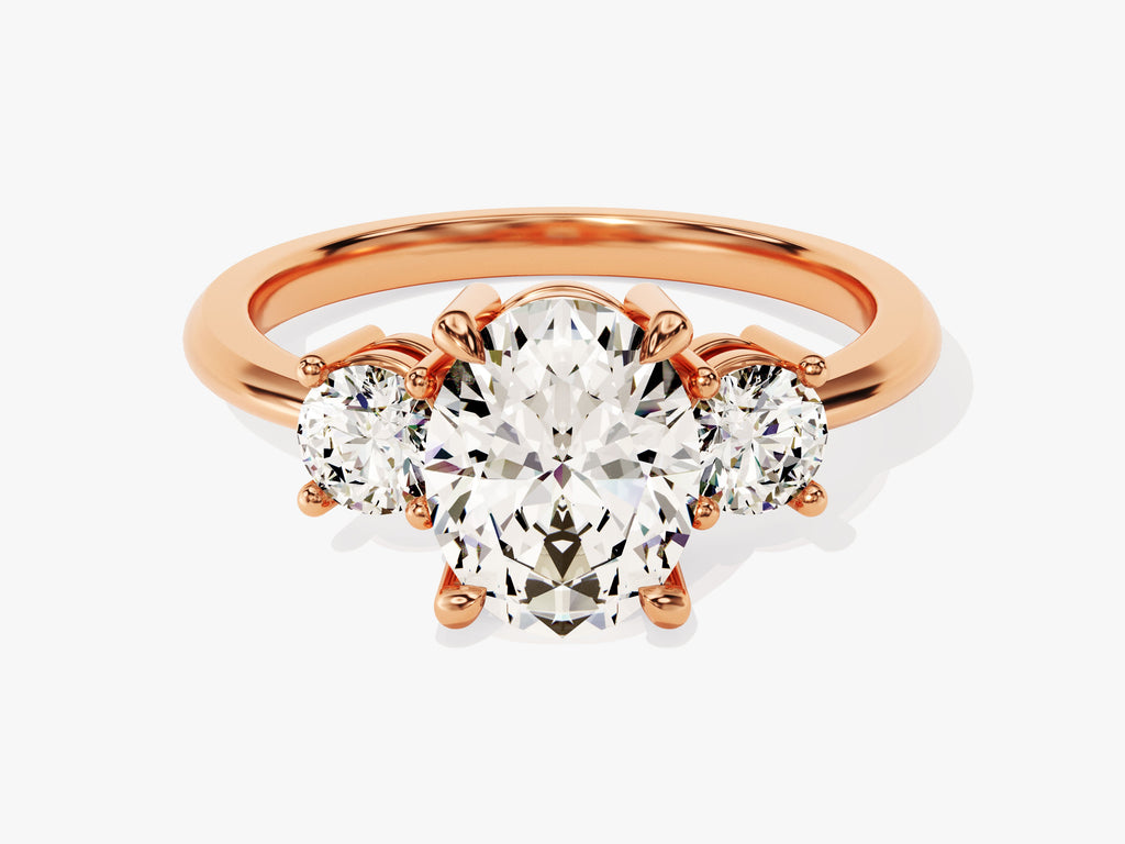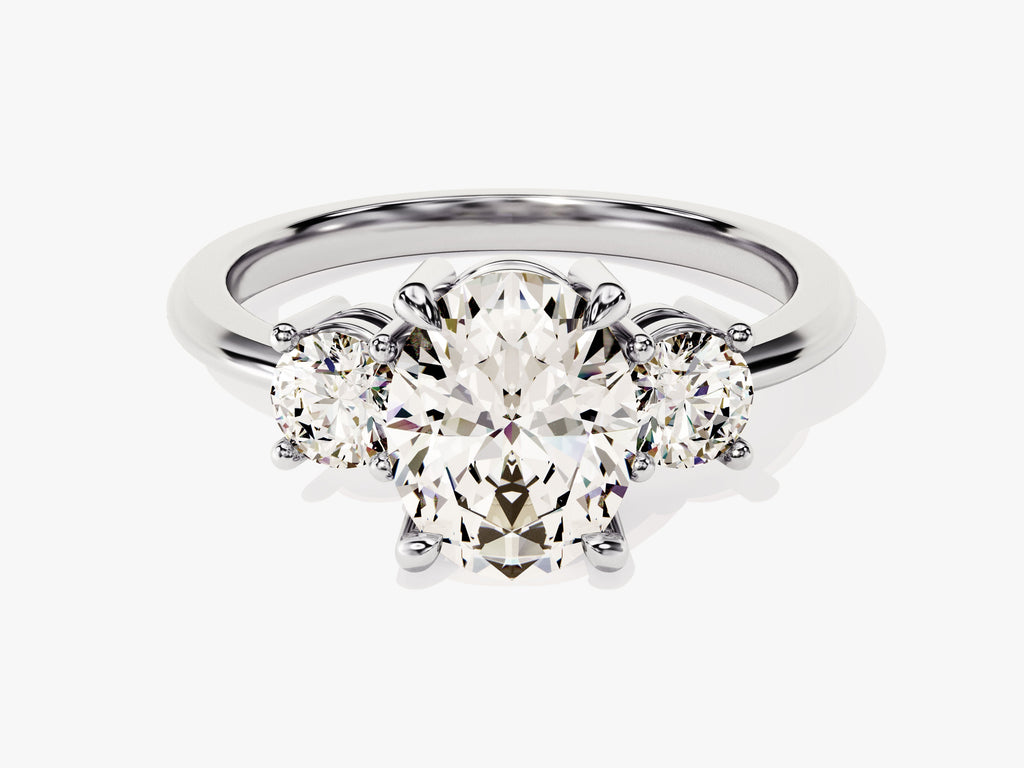 Classic Basket Set Three Stone Oval Moissanite Engagement Ring (2.50 CT TW)