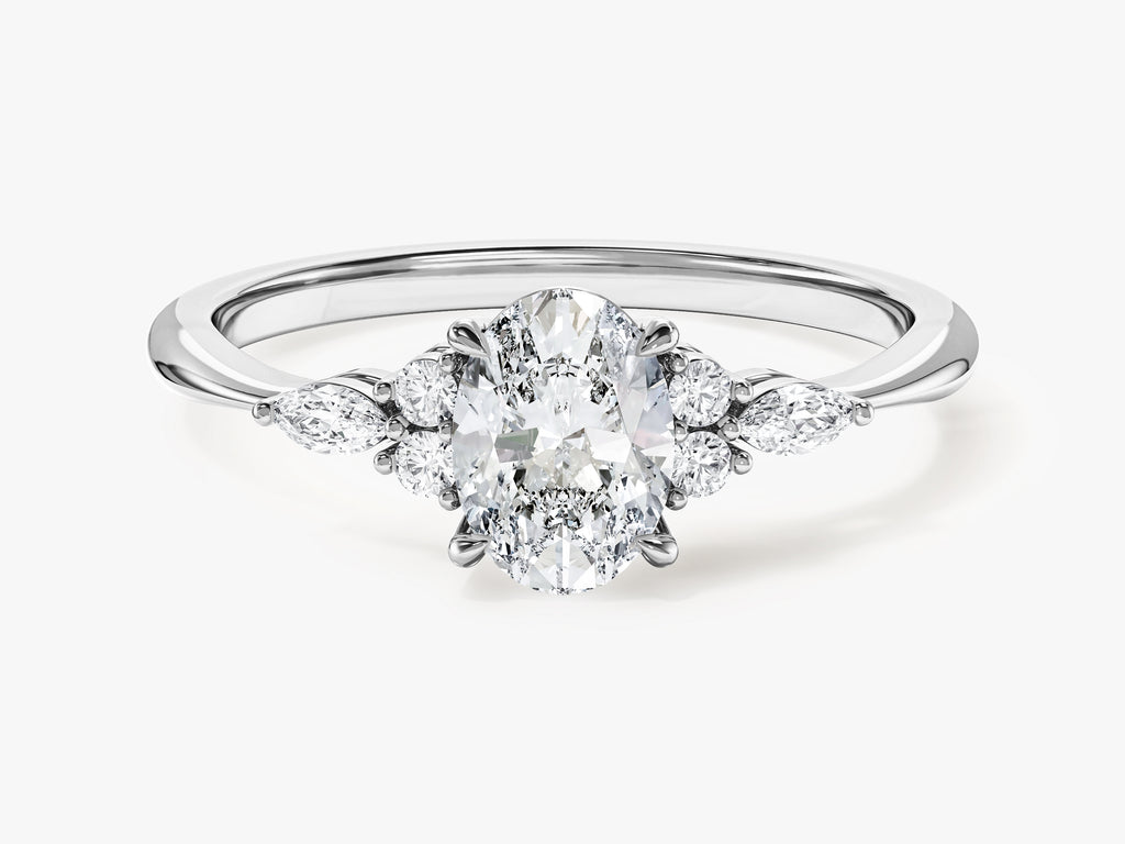 Cluster Accent Oval Cut Lab Grown Diamond Engagement Ring (1.00 CT)